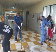 Le Médecin Directeur Dr. Roger Kongo Minga, en sa qualité de président du Comité Hygiène Hospitalière donne l’exemple et le GO